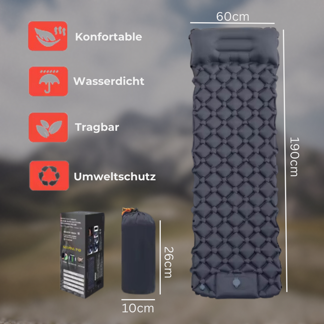 • Großzügige Liegefläche: Mit einer Größe von 190 cm x 60 cm bietet die Matratze ausreichend Platz für entspannte Nächte, egal ob im Zelt, unter freiem Himmel oder bei spontanen Übernachtungen.